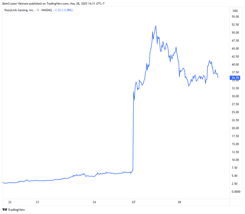 E’lon qilinganidan so’ng, SBET aksiyalari bir kunda 85% dan ortiq ko’tarildi. U bir paytlar 53 dollardan oshib ketdi, uch savdo kunida 1,800% o’sishni ko’rsatdi. “SharpLink” o’zini “Efirium uchun MicroStrategy” sifatida ko’rsatmoqda, ya’ni kriptovalyutani to’g’ridan-to’g’ri ushlab turolmaydigan fondlar uchun jamoat vakili sifatida harakat qilmoqda.