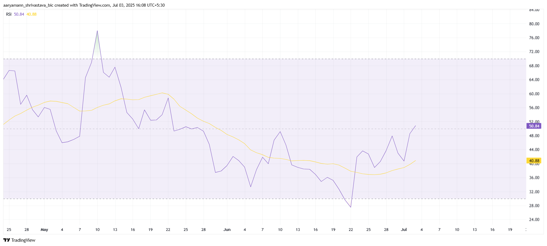Ortiqcha baholanishiga qaramay, «Shiba Inu»ning texnik indikatorlari ijobiy o’sish belgilari ko’rsatmoqda. Nisbiy kuch indeksi (RSI) ijobiy zonaga yaqinlashmoqda, bir yarim oydan ortiq vaqt ichida birinchi marta 50.0 neytral belgidan yuqoriga ko’tarilmoqda. RSI 50.0 dan yuqori bo’lsa, bu bozor hissiyotining yaxshilanayotganini ko’rsatadi.