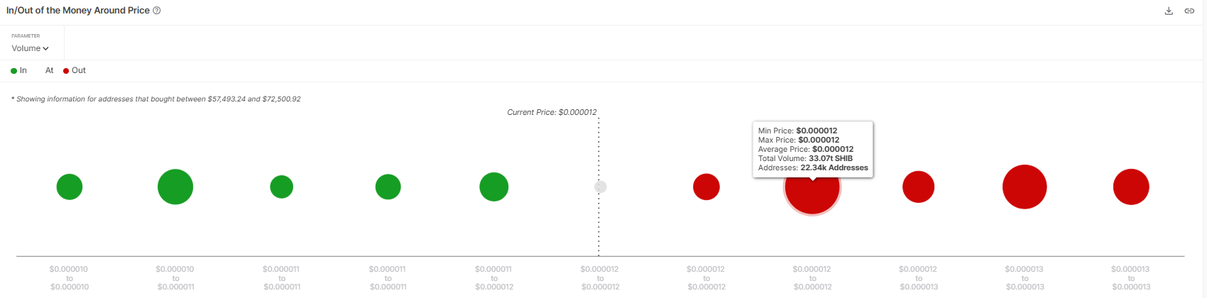 Erta bosqichda sotib olgan investorlarning sotish ehtimoli SHIB narxining o’sishini cheklovchi asosiy omil hisoblanadi. Narx $0.00001200 darajasidan o’tishga qiynalayotgan bir paytda, taklif zonasi muhim to’siq bo’lib qolmoqda. Ushbu tokenlarni zarar bilan ushlab turgan investorlar chiqishni xohlashlari mumkin, bu esa SHIBning tiklanishini to’xtatishi mumkin.