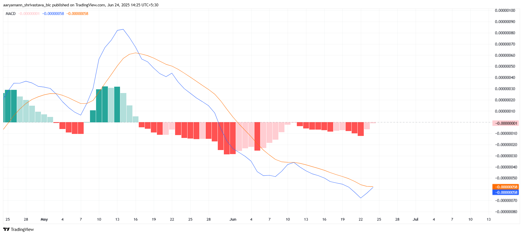 Texnik jihatdan, Harakatlanuvchi O’rtacha Konvergentsiya Divergentsiyasi (MACD) indikatori ijobiy kesishishga yaqinlashmoqda, bu «Shiba Inu» uchun potentsial o’zgarishni ko’rsatmoqda. MACD deyarli bir oy davomida salbiy kesishishda bo’lib, pasayish tendensiyasiga hissa qo’shdi va SHIB narxini bosim ostida ushlab turdi. Biroq, MACD ijobiy kesishishga yaqinlashgani sari, bu salbiy tendensiyaning susayishini ko’rsatishi mumkin.
