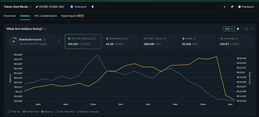 So’nggi 24 soat ichida bozor pasaygan bo’lsa-da, «Aqlli Pul» hamyonlari 3,78 milliard SHIB qo’shdi, birja zaxiralari esa 56,6 milliard SHIB ga kamaydi. Bu birgalikda birjalardan taxminan 60,4 milliard SHIBni olib tashladi, bu hozirgi Shiba Inu narxida ($0.00001235) deyarli 750 000 dollarga teng.