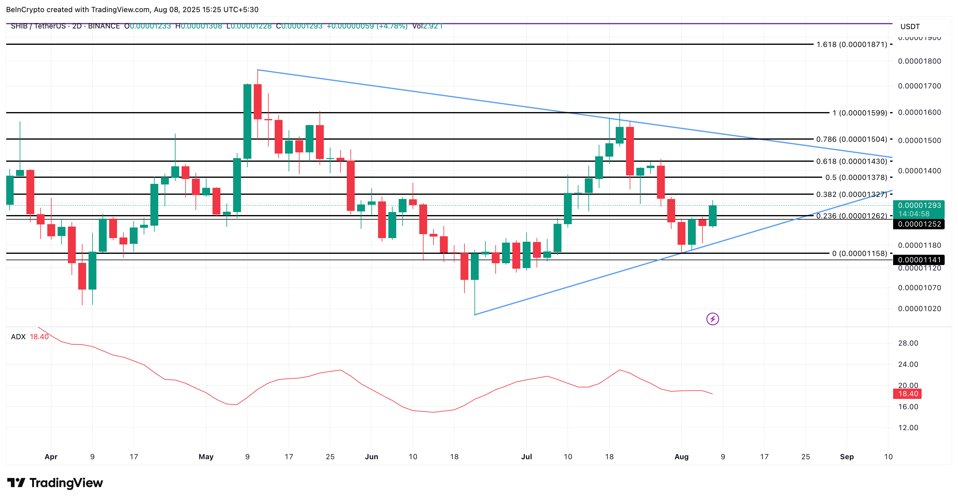 Memkoinlar indeksi so’nggi 24 soat ichida 6.2% ga oshgan bo’lsa-da, SHIB tor bir diapazonda qiyinchilik bilan harakatlanmoqda va pasayish xavfi ortmoqda.