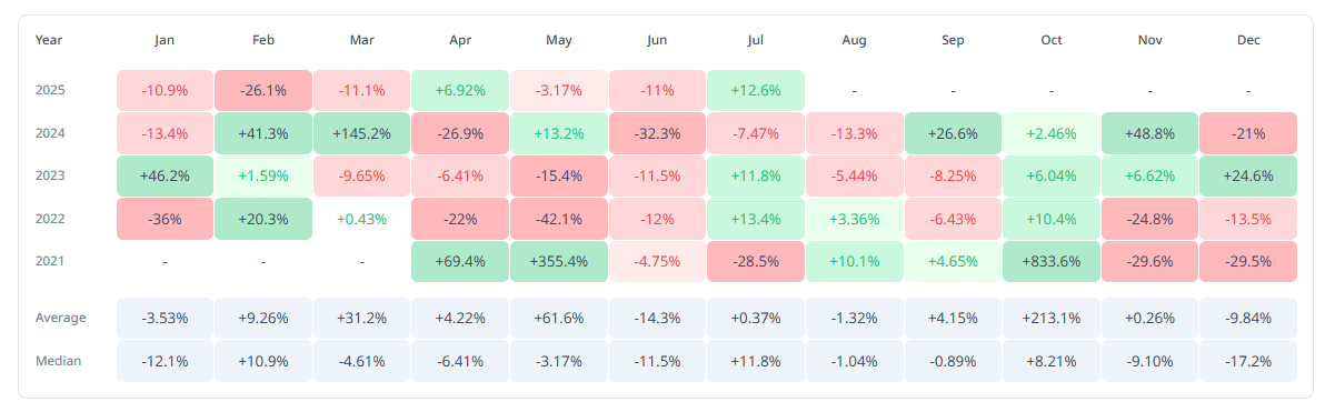 Tarixiy ma’lumotlar shuni ko’rsatadiki, «Shiba Inu» avgust oyida o’rtacha -1.32% qaytishni boshdan kechiradi. So’nggi to’rt yil uchun median qaytish -1.04% ni tashkil etadi. Bu statistikalar SHIB narxi o’zgaruvchan bo’lishi mumkinligini ko’rsatadi, ammo oy oxiriga kelib uning narxi hozirgi qiymatdan pastroq bo’lishi ehtimoli bor.