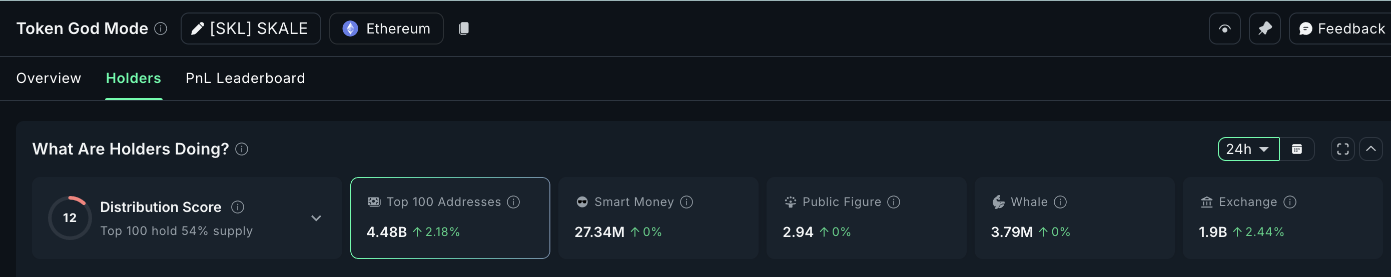 10 million – 100 million SKL guruhidagi asosiy o’zgaruvchilar o’zlarining ulushlarini 3.27 milliarddan 3.14 milliard SKLgacha kamaytirdilar — 130 million SKL (4%) qisqartirish. Shu bilan birga, birja zaxiralari 2.44% ga oshib, 1.90 milliard SKLga yetdi, bu esa 24 soat ichida taxminan 45.3 million SKL birjalarga oqib kelganini anglatadi.