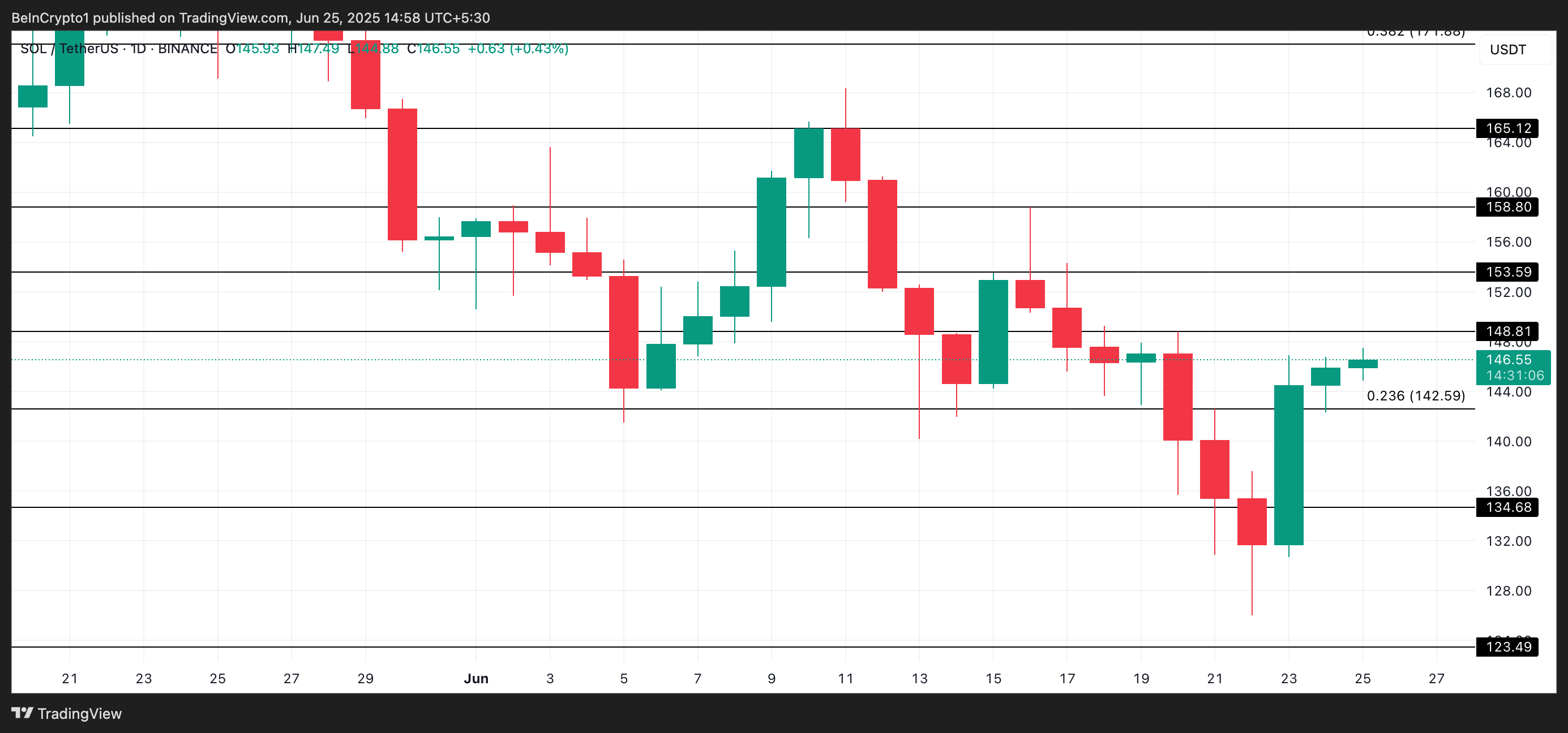 Asosiy egalar qiziqishi ortib borayotgani va umumiy bozor sur’ati yaxshilanayotgani sababli, SOL iyul oyiga qadar o’z yutuqlarini kengaytirishga tayyor ko’rinadi. Agar altkoin muvaffaqiyatli ravishda 148.81 dollar qarshiligidan o’tib ketsa, 150 dollar darajasiga yetishi mumkin.