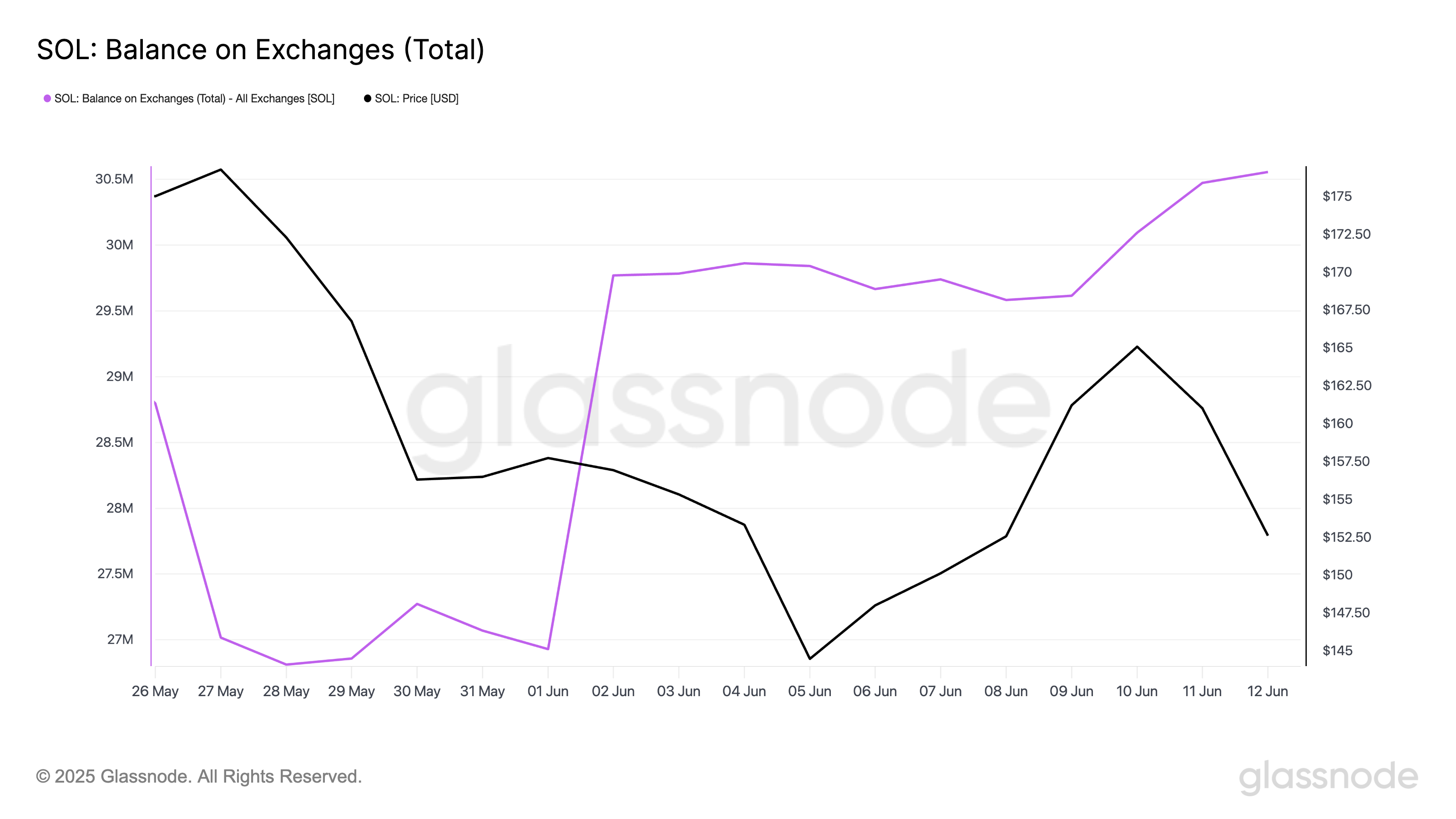 So’nggi bir necha kun ichida raqamli aktivlar o’sish sur’atini saqlab qolishga qiynaldi. Bu investorlar qiziqishini pasaytirdi va SOL’ning birjalarda saqlanayotgan balansini oshirdi. Hozirda bu miqdor 31 million SOL’ga yetdi, bu ikki haftadagi eng yuqori ko’rsatkichdir.