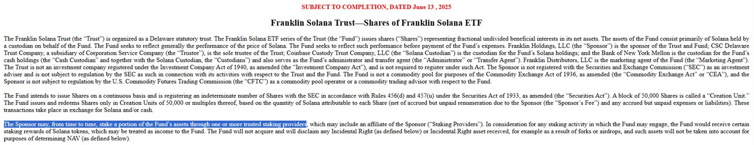 Solana ETF hujjatlarida staking haqida ma’lumotlar mavjud