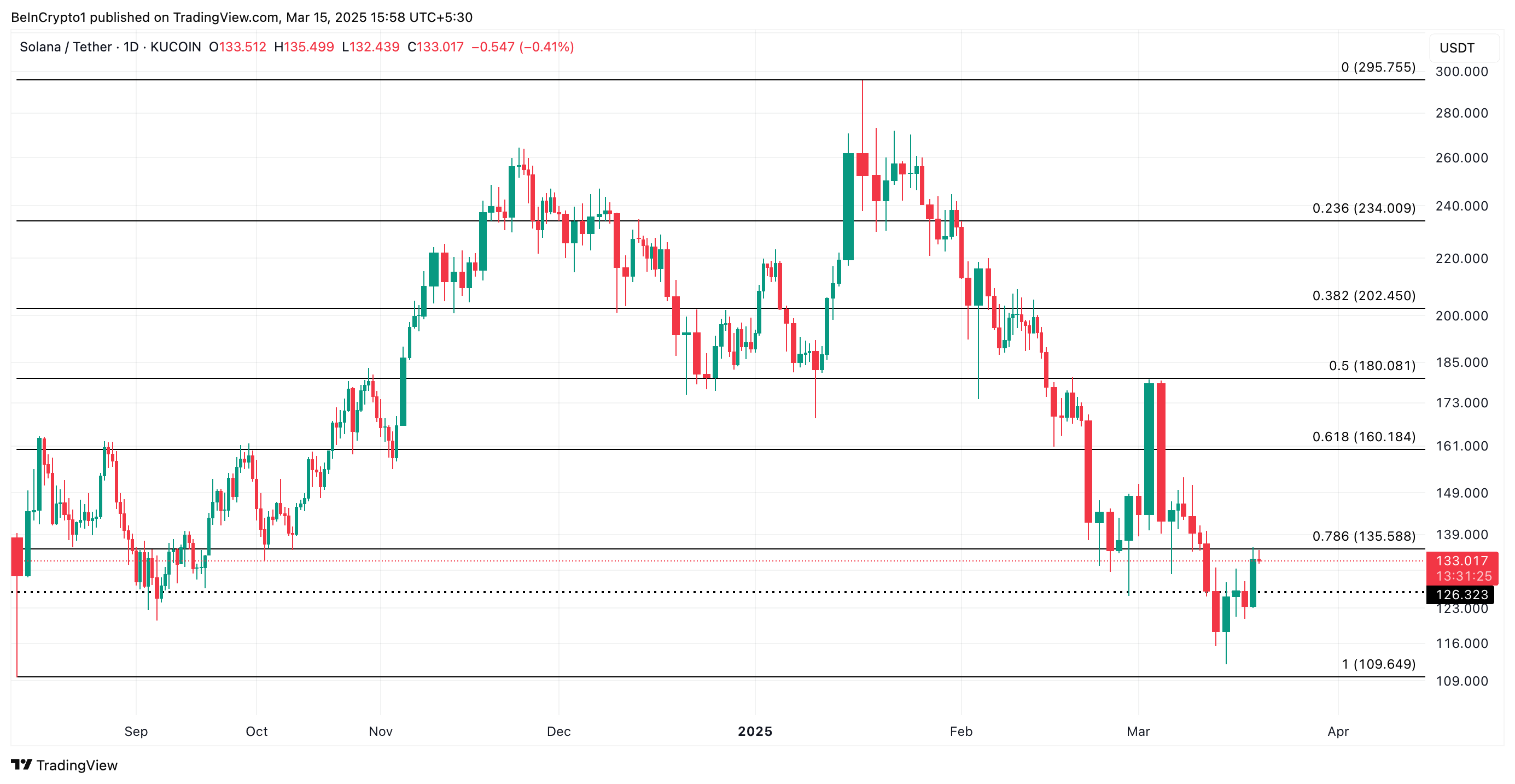 Matbuot vaqtida SOL $133.01 da savdo qilmoqda, $135.58 qarshilik darajasidan biroz pastda. Agar talab yanada kuchaysa, tanga bu qarshilikni qo’llab-quvvatlash darajasiga aylantirishi va uning narxi $160.18 ga ko’tarilishi mumkin.