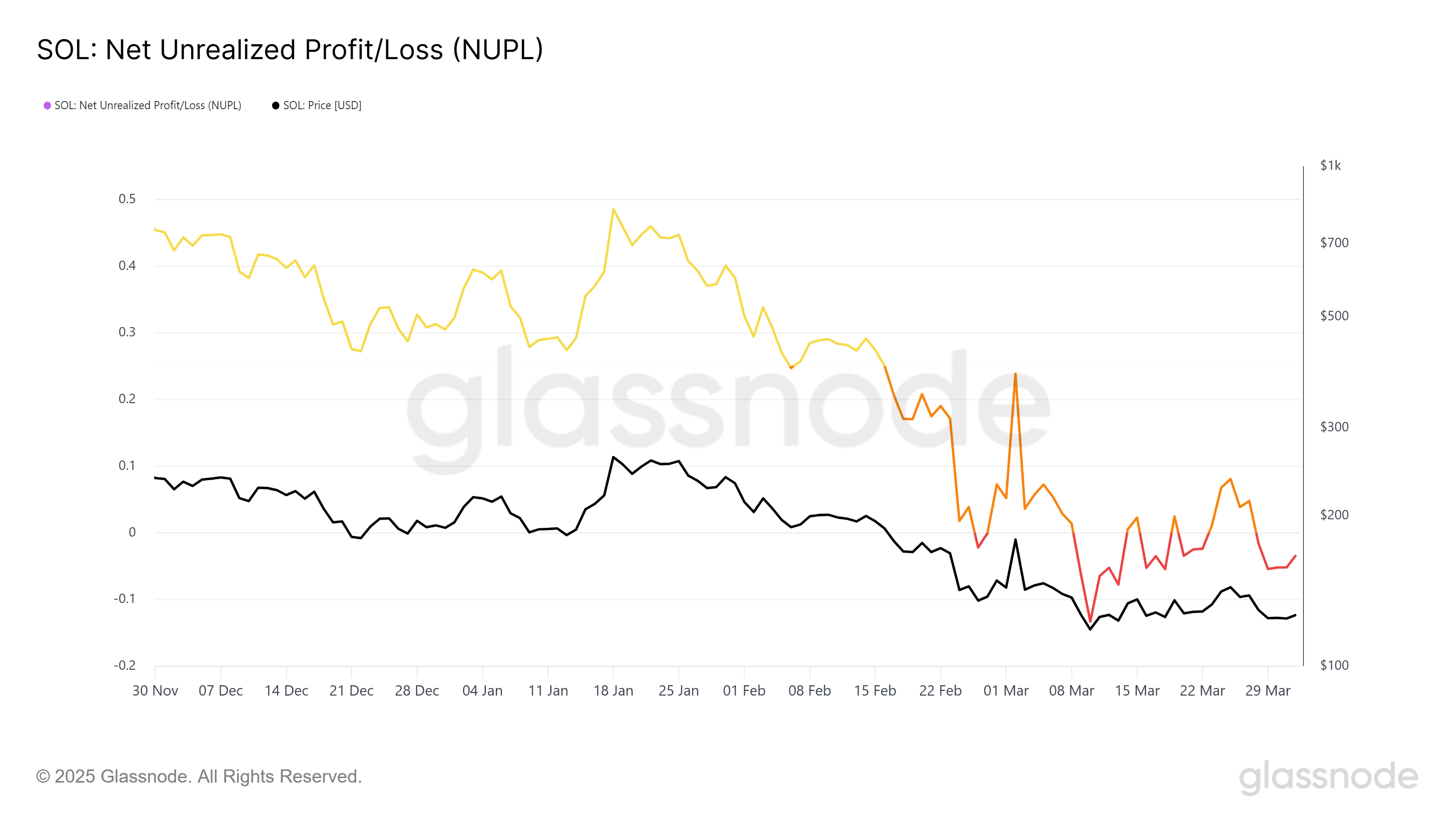 Sof amalga oshirilmagan foyda/yo’qotish (NUPL) indikatori Solana kapitulyatsiya fazasiga kirganini ko’rsatadi, bu odatiy bozor pastki signalidir. Bu zona ko’pincha narxlar qayta tiklanadigan nuqtani belgilaydi. Bozor kayfiyati past bo’lgani uchun, ko’plab investorlar Solana narxi tez orada tiklanishi mumkinligiga ishonishmoqda.