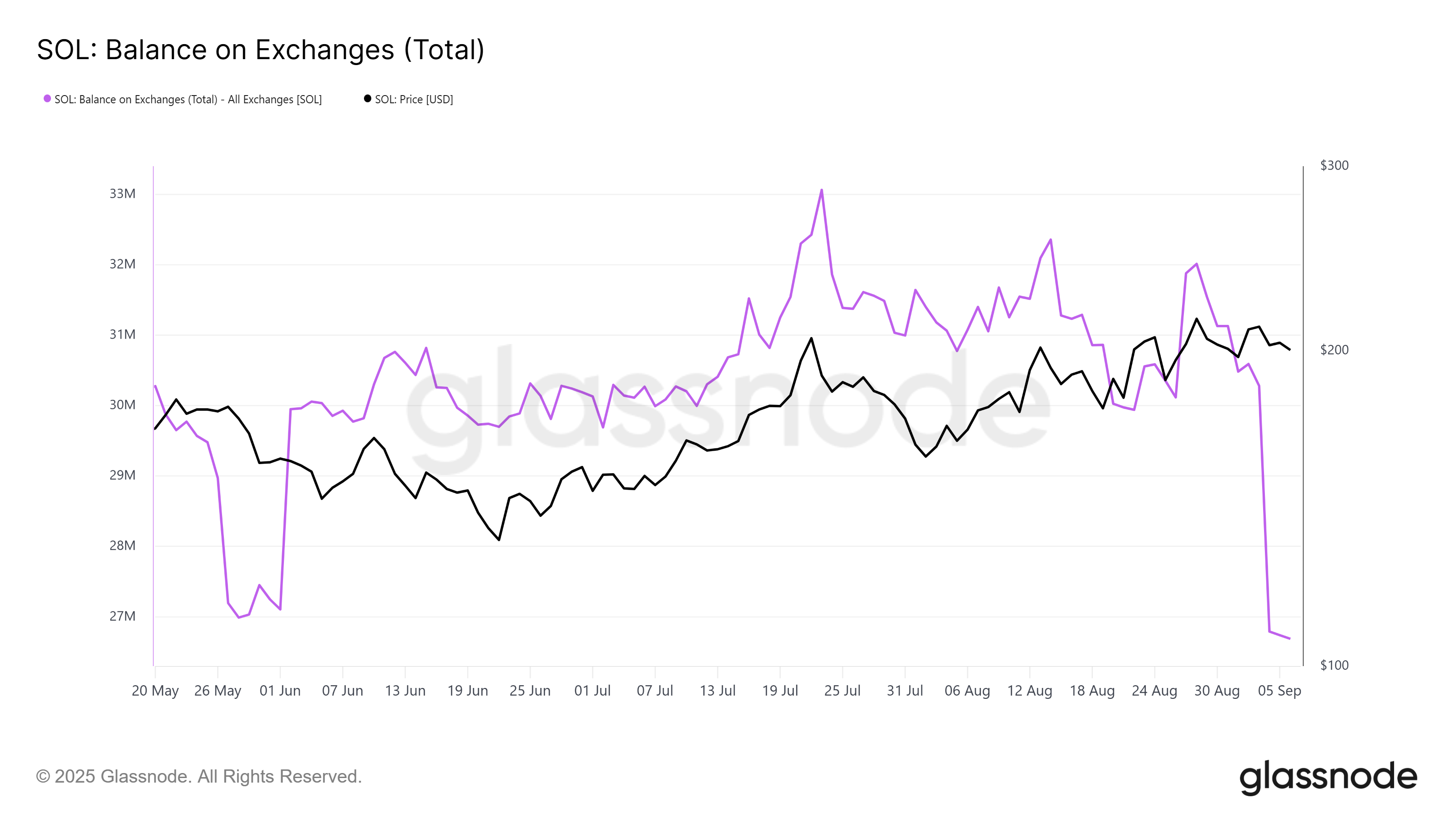Ma’lumotlarga ko’ra, birjalardagi balanslar oy boshidan beri 3,79 million SOL ga kamaygan. Bu investorlar xatti-harakatlarida o’zgarish borligini ko’rsatadi, chunki tokenlar markazlashgan platformalardan chiqib ketmoqda. Bu odatda yig’ish va uzoq muddatli saqlash belgisidir.