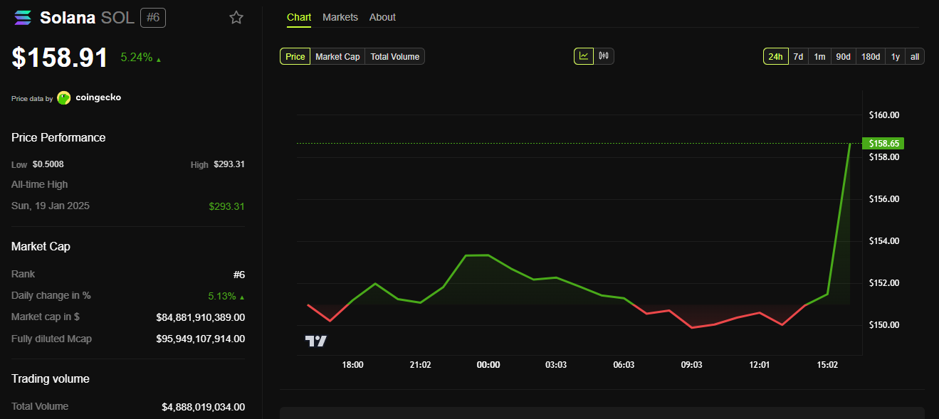 «Solana»ning narxi e’lon qilinganidan so’ng bir soat ichida deyarli 4% ga oshdi. Bu bozorning kuchli qiziqishini ko’rsatadi. ETF SSK belgisi ostida ro’yxatga olinishi kutilmoqda.