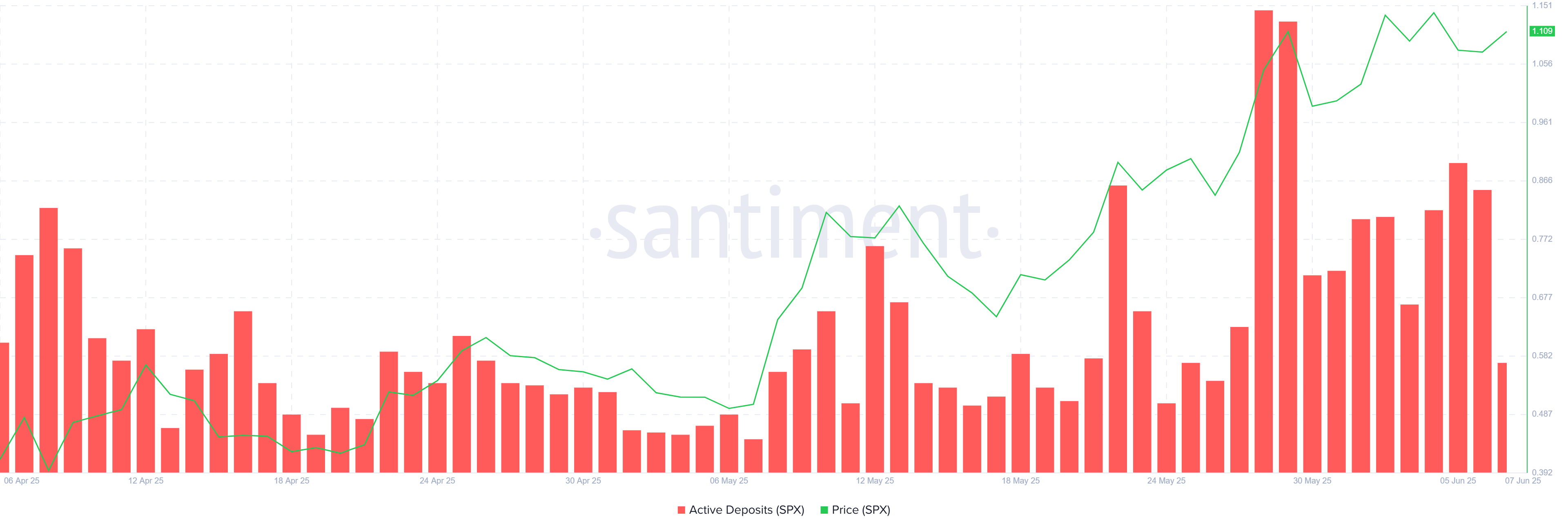 Sotish bosimi davom etar ekan, «SPX» $1.20 qarshilik va $1.00 qo’llab-quvvatlash darajalari orasida qolib ketishi mumkin, bu esa sezilarli yuqoriga harakatni oldini oladi.