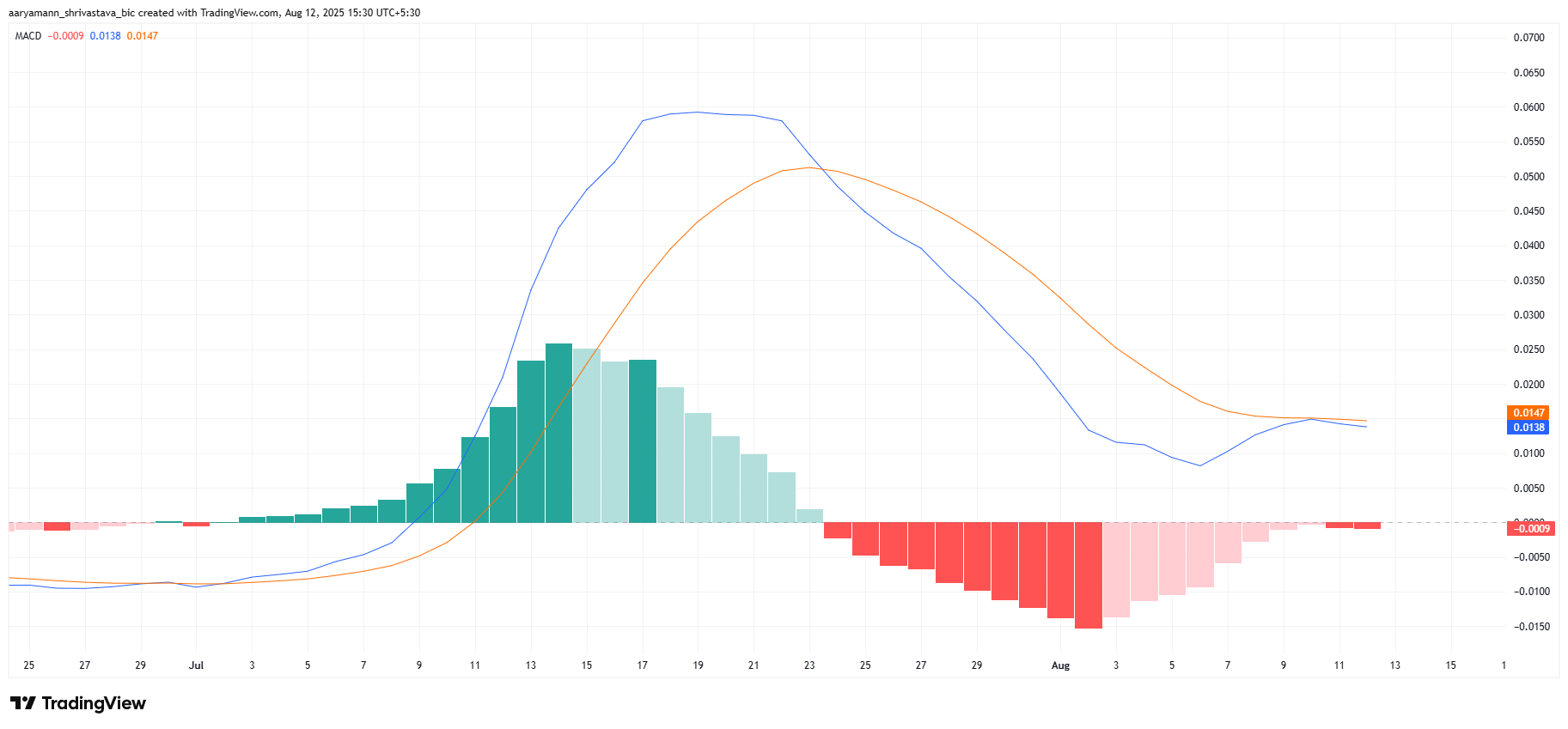 Harakatlanuvchi o’rtacha konvergentsiya va divergensiya (MACD) indikatori XLM uchun ijobiy o’zgarish belgilari ko’rsatmoqda. MACD histogrammasi yaqinda ijobiy tomonga o’zgarishga yaqinlashdi, lekin kichik bir to’siqka duch keldi. Biroq, bu to’siq qisqa muddatli bo’lishi mumkin, chunki bozor sharoitlari yaxshilanmoqda.