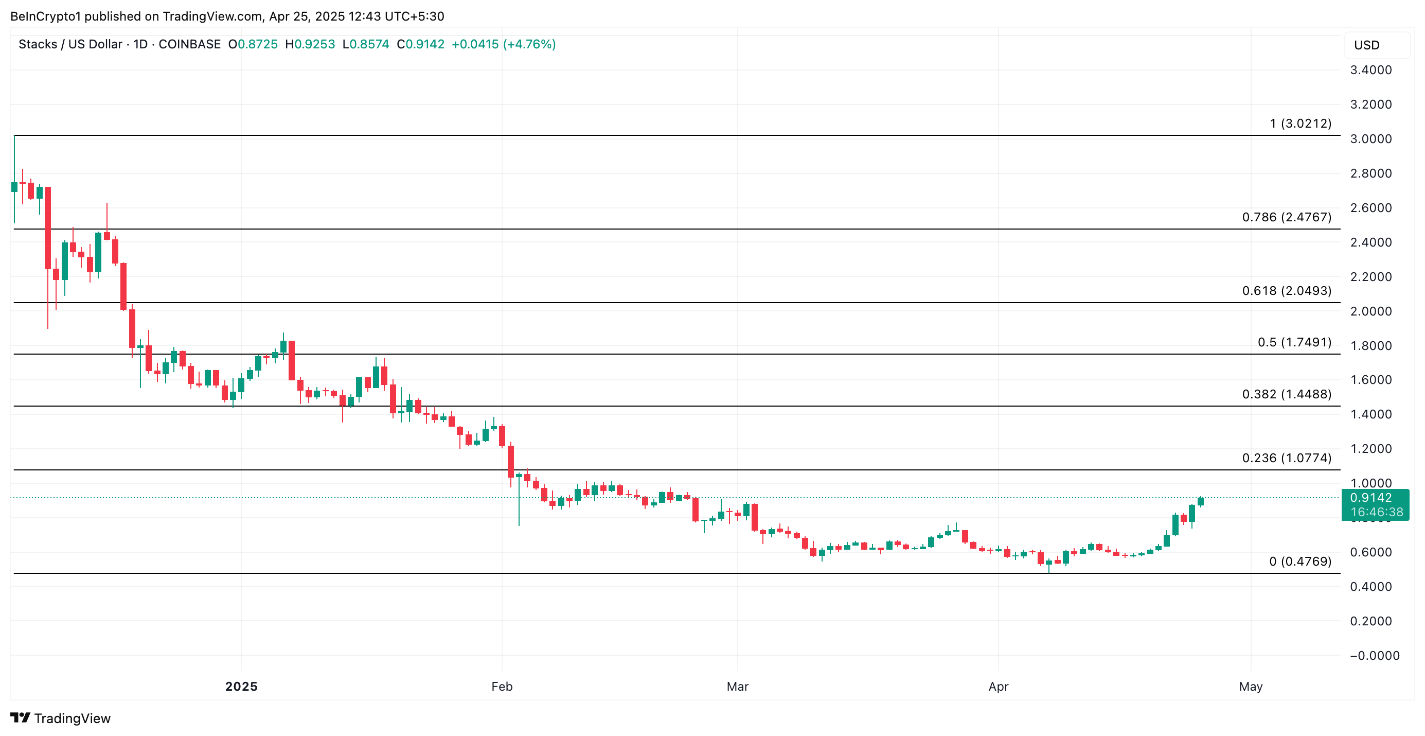 Agar talab kuchaysa, STXning o’sishi davom etishi mumkin. Bu tokenning $1.07 qarshilik darajasidan yuqoriga chiqishiga imkon berishi mumkin.
