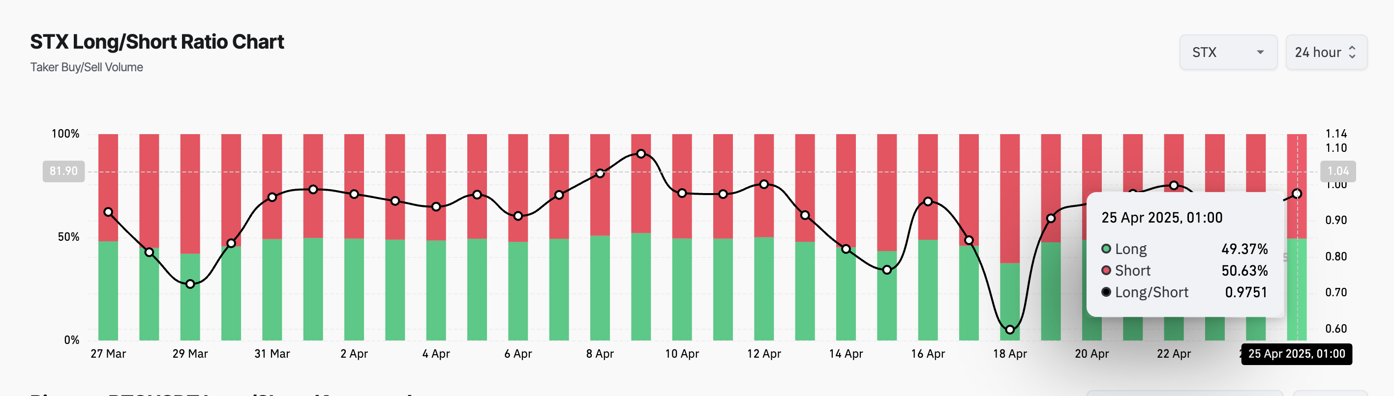 «Coinglass» ma’lumotlariga ko’ra, STXning uzun/qisqa nisbati hozirda 0.97 ni tashkil etadi. Bu uning fyuchers bozoridagi ishtirokchilari orasida qisqa pozitsiyalarga afzallik berilayotganini ko’rsatadi.