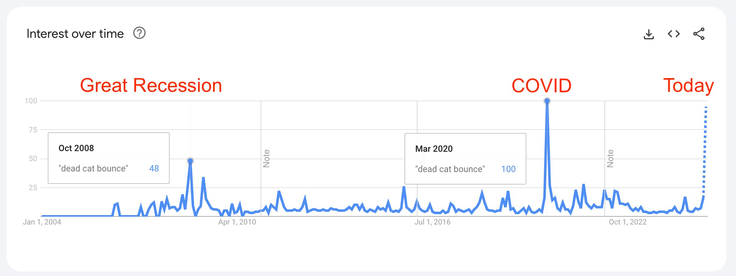 “O’lik mushuk sakrashi” atamasi — bu aktiv narxlari keskin pasayishdan keyin vaqtinchalik tiklanishi, so’ngra yana pasayish davom etishi — onlayn qidiruvlarda COVID-19 pandemiyasidan beri ko’rilmagan darajaga yetdi.