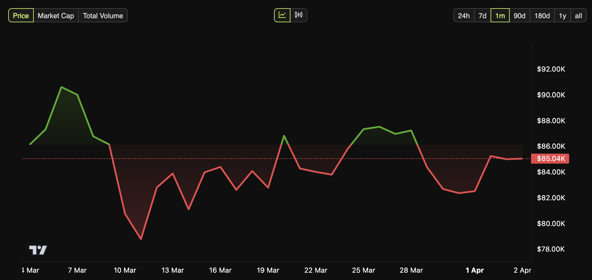 Narx bo’yicha, Bitcoin o’tgan hafta davomida 3.1% ga pasaydi. Matbuot vaqtida, tanga $85,042 da savdo qilinayotgan edi, bu esa o’tgan kun davomida 0.8% kichik o’sishni ifodalaydi.