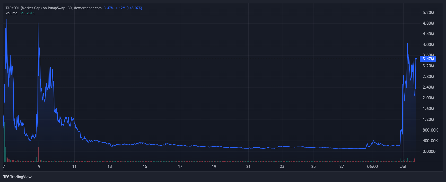 O’tgan oygi mojarolar paytida «Pump.Fun»ning markazlashmagan birjasida «The American Party» nomli memkoin paydo bo’ldi. U hatto $5 million bozor qiymatiga erishdi, lekin mojarolar tugagach, tezda pasaydi.