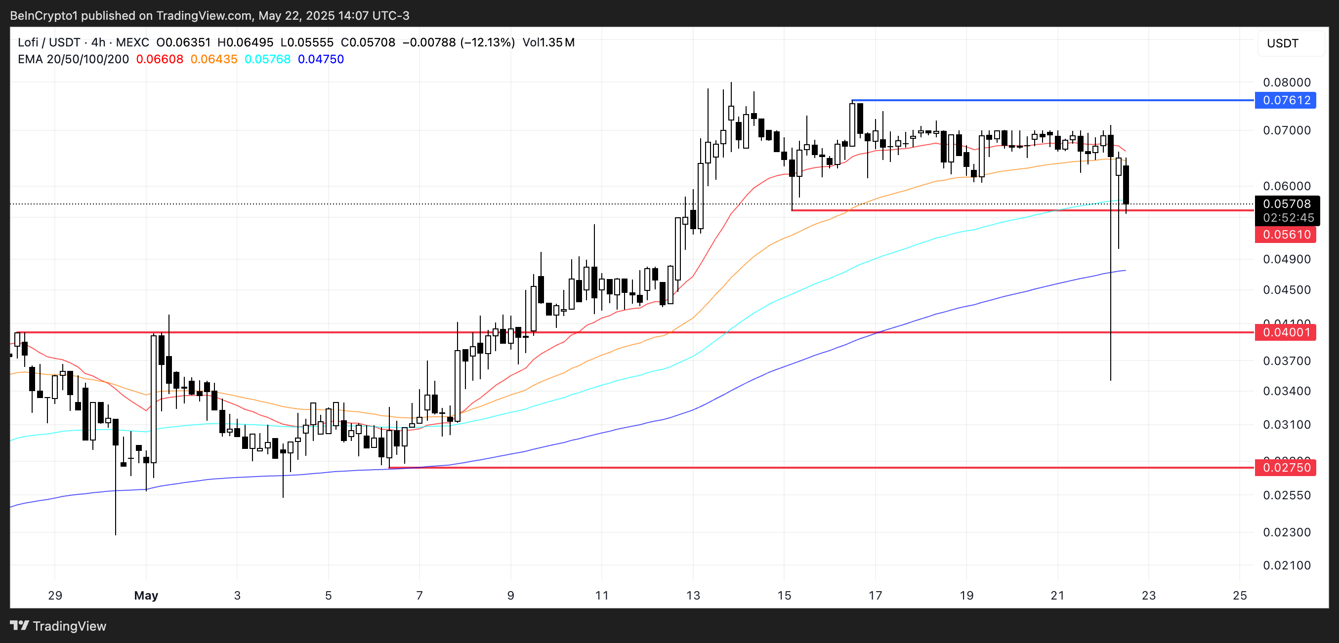 Shunga qaramay, texnik xavflar yuqori darajada qolmoqda. Agar LOFI $0.056 qo’llab-quvvatlash darajasini yo’qotsa, u $0.040 yoki hatto $0.0275 gacha pasayishi mumkin.