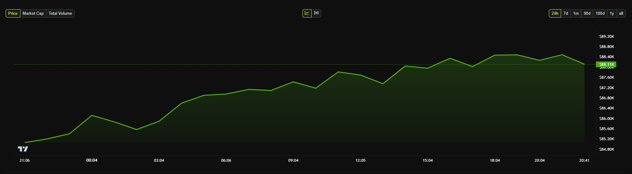 Masalan, Tramp bu oy boshida moslashuvchanlikni ko’rsatganida, Bitcoin $88,000 atrofida qayta tiklandi. Toraytirilgan tariflar shunga o’xshash o’sishni keltirib chiqarishi mumkin.