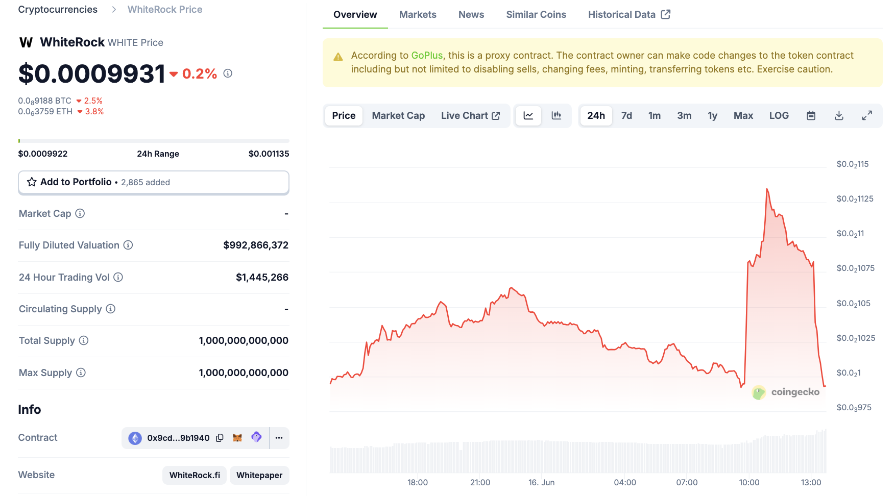 Hozircha, hamma narsa juda g’alati ko’rinadi. ZachXBT «WhiteRock»ni firibgarlikda aybladi va WHITE darhol oshdi. Kompaniya o’z harakatlarini himoya qiluvchi bayonot berdi va WHITE shunga teng miqdorda tushdi.