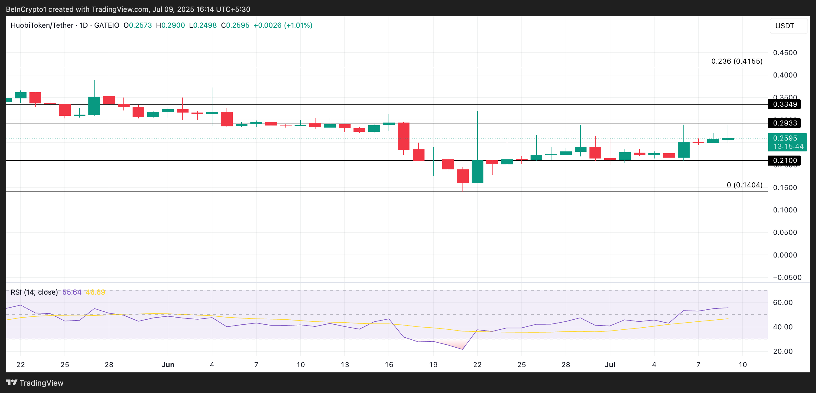 HT ning RSI ko’rsatkichlari bozor ishtirokchilari tarqatishdan ko’ra to’plashni afzal ko’rayotganini ko’rsatadi. Agar bu tendensiya davom etsa, uning narxi $0.29 ga ko’tarilishi mumkin.