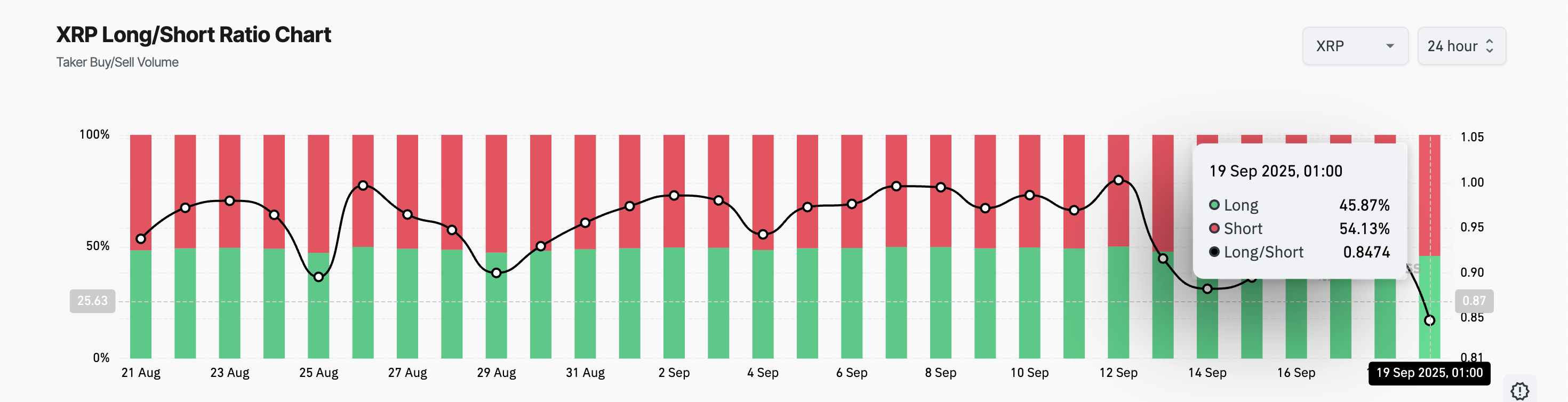 XRPPga bo’lgan institutsional talab shubhasiz bo’lsa-da, qisqa muddatli bozor ishtirokchilari ehtiyotkorlikni afzal ko’rishmoqda, ko’pchilik tokenning yaqin muddatdagi o’sish imkoniyatlariga qarshi pul tikmoqda.