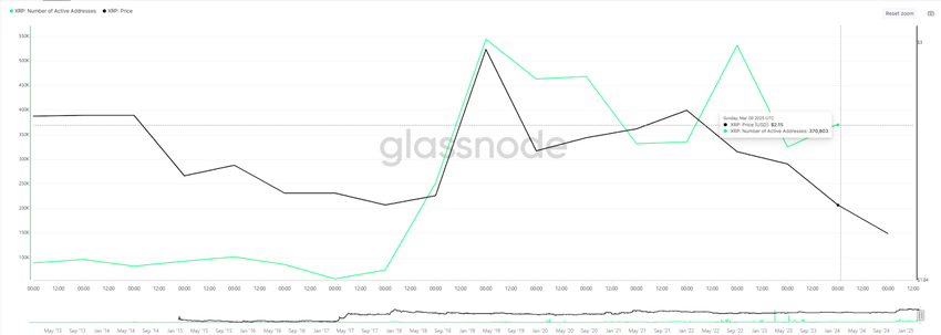 Glassnode dan olingan on-chain ma’lumotlariga ko’ra, 21-fevraldan 10-martgacha faol XRP manzillari soni uch barobardan ko’proq oshdi.