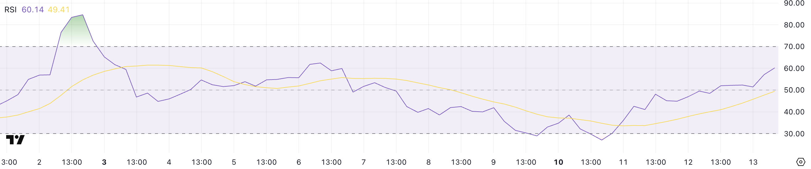 XRP ning Nisbiy Kuch Indeksi (RSI) sezilarli darajada 60.14 ga ko’tarilib, uch kun oldin 27 dan oshdi. RSI – bu 0 dan 100 gacha bo’lgan shkalada so’nggi narx o’zgarishlarining tezligi va kattaligini o’lchaydigan impuls osilatoridir.