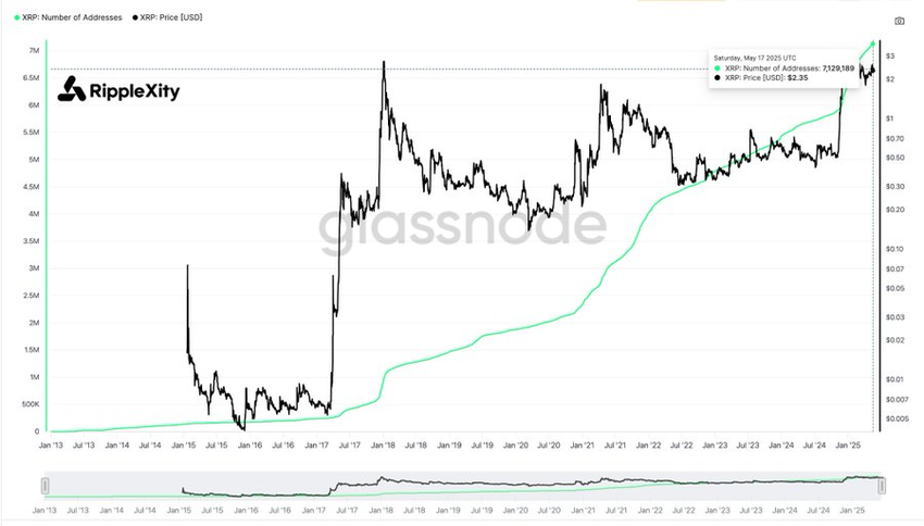 «RippleXity» (tahlil platformasi) «Glassnode» (tahlil platformasi) ma’lumotlariga tayanib, XRP hamyonlari ro’yxatdan o’tishlari 7,1 milliondan oshganini, bir milliondan ortiq XRP saqlovchi hamyonlar soni esa 2,700 dan oshganini xabar qildi.