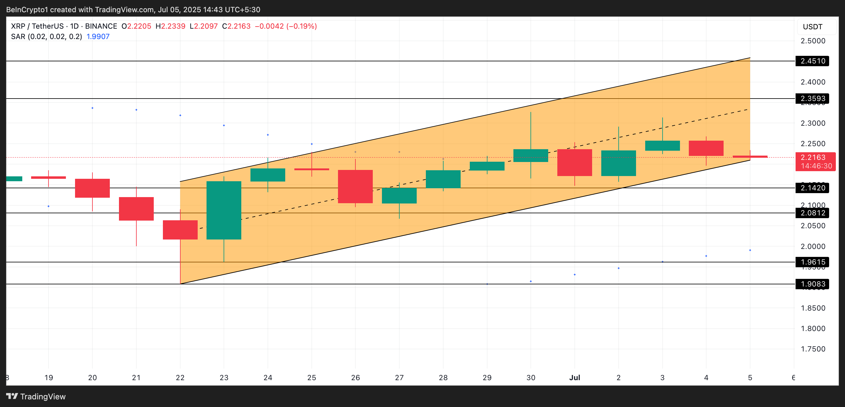 Bundan tashqari, XRP ning Parabolik To’xtatish va Teskari (SAR) indikatori bu ijobiy ko’rinishni tasdiqlaydi. Ushbu yozuv paytida, indikatorni tashkil etuvchi nuqtalar XRP narxining ostida joylashgan bo’lib, $1.99 da dinamik qo’llab-quvvatlashni taklif qiladi.