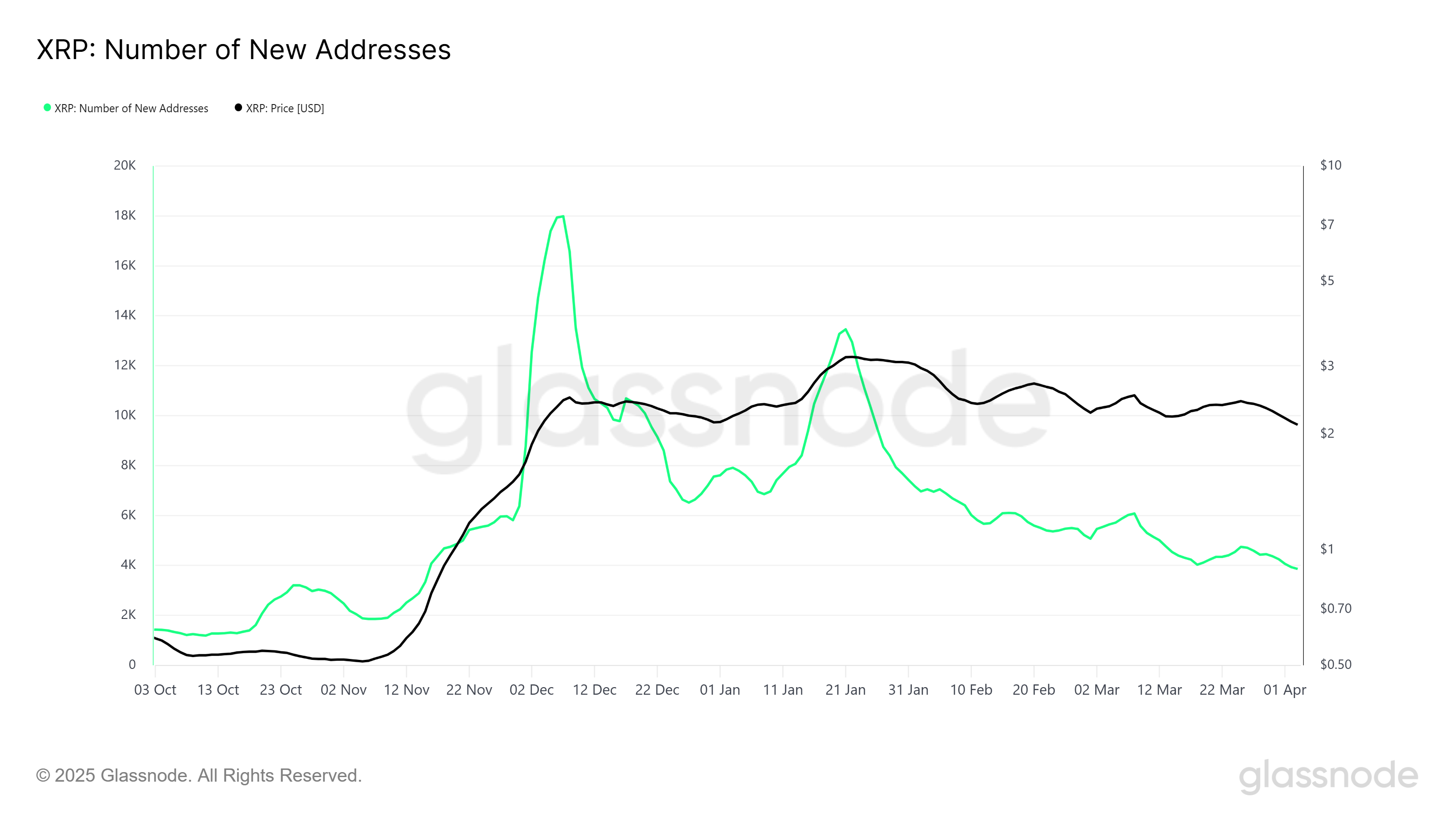 Yangi manzillar sonining pasayishi bozorning umumiy tortishishining kamayishi va xaridorlarning ishonchsizligi tendentsiyasini aks ettiradi. LTHlardan sotish bosimi bilan birgalikda, bu XRP uchun bullish harakatni qayta tiklash uchun qiyin muhit yaratadi.
