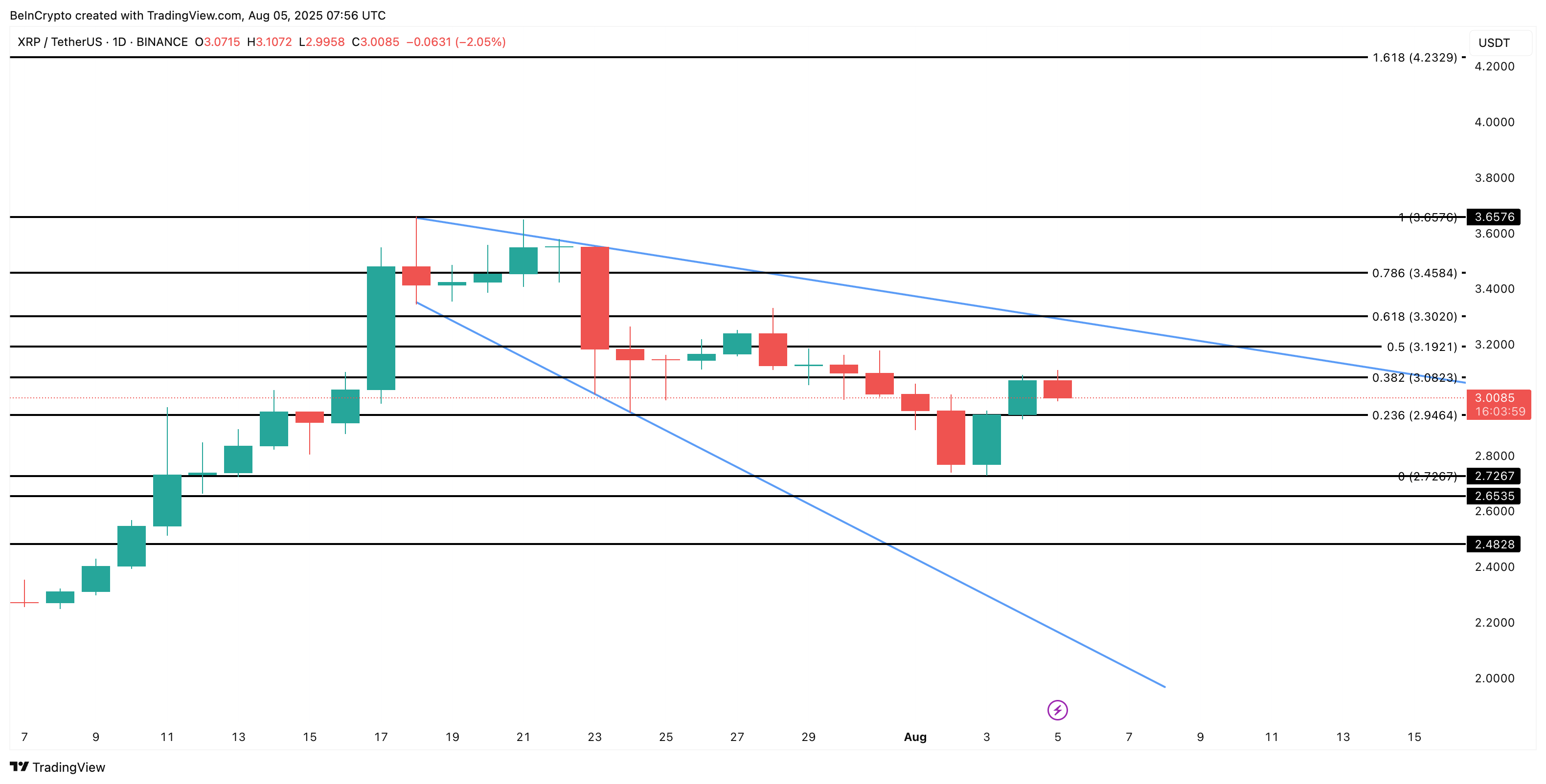 Avgust oyi tarixan XRP uchun o’zgaruvchan bo’lganligi sababli, narx muhim bir pallada turibdi. Bu pallada hamma narsa treyderlar va katta miqdordagi token egalari (kitlar) $3.00 atrofida qanday harakat qilishiga bog’liq.