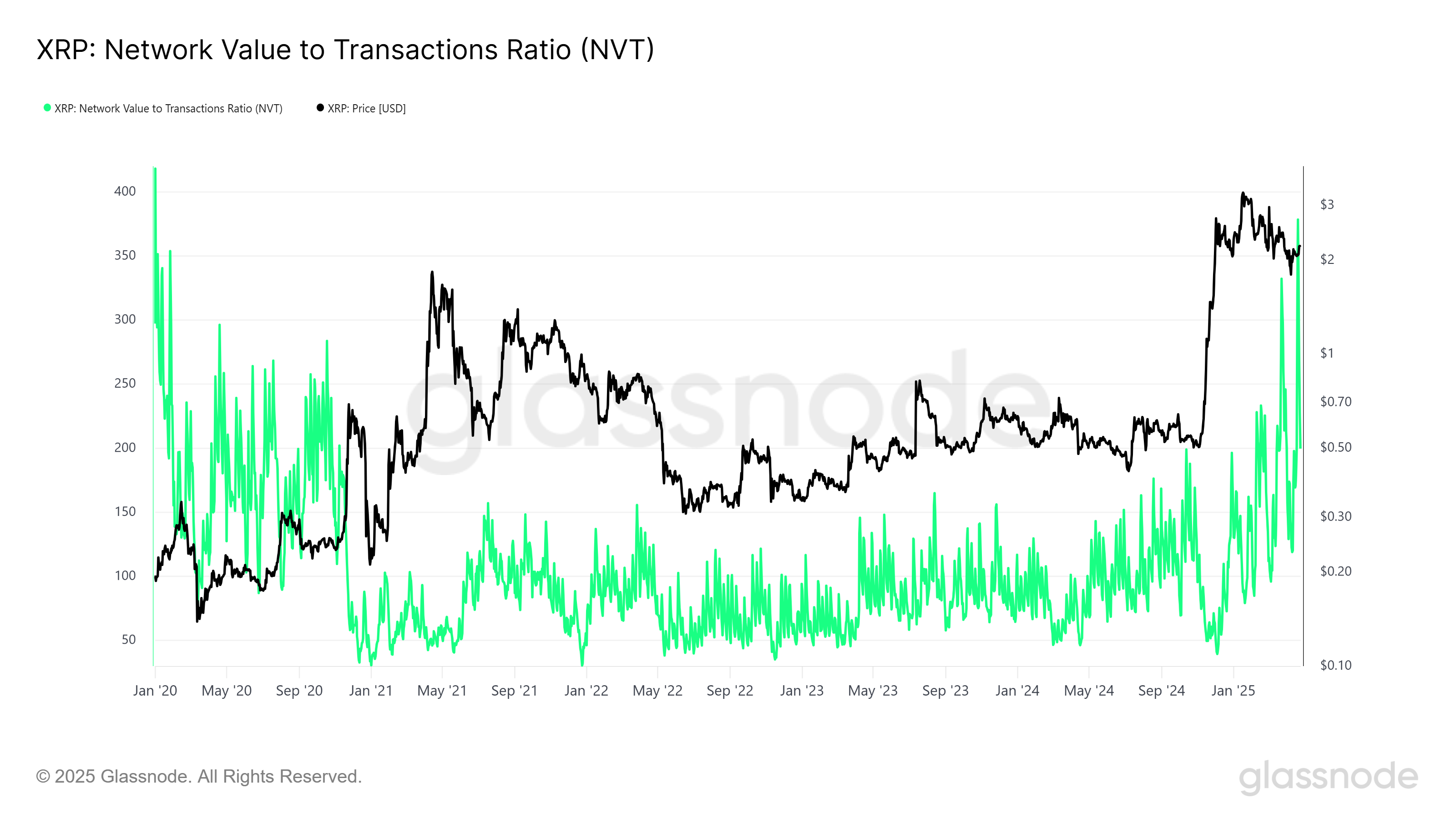 Bu holat tarixan narxning tuzatilishi bilan bog’liq bo’lgan. Oxirgi marta NVT nisbati shunga o’xshash darajalarga 2020 yil yanvar oyida yetgan edi, bu XRP katta narx pasayishini boshdan kechirishidan oldin edi. NVT ning ko’tarilishi bozor qizib ketayotganini va sovishini kutayotganini ko’rsatmoqda.