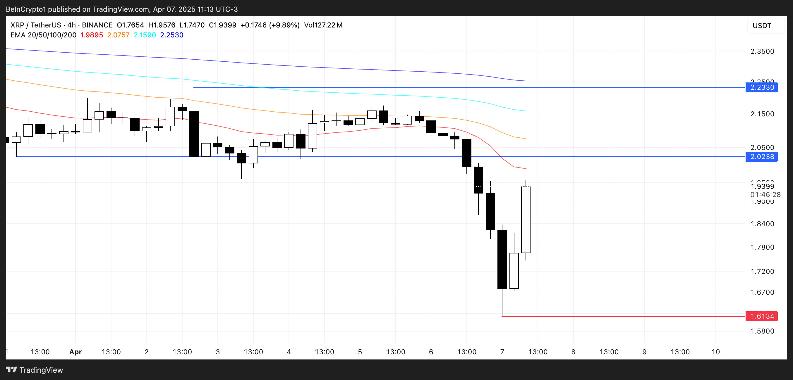 XRP so’nggi 24 soat ichida 5% dan ko’proq pasaygan, ammo hozirda qayta tiklanishga harakat qilmoqda va $2 darajasidan yuqoriga ko’tarilishga urinmoqda. Bugun ertalab chuqur sotilgan RSI darajalariga tegib, token makro yangiliklar o’zgarishi fonida tiklanishning dastlabki belgilari ko’rsatmoqda.