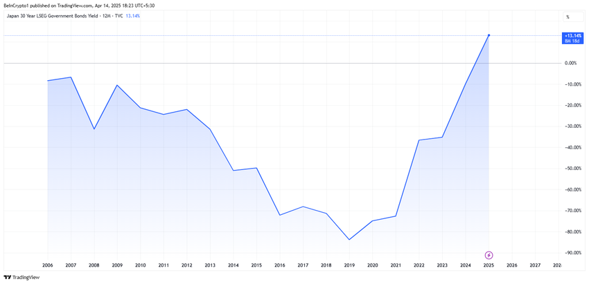 Yaponiyaning 30 yillik obligatsiyalari rentabelligi 20 yil ichida eng yuqori darajaga ko’tarildi va bugungi kunda AQShning eng yaxshi kripto yangiliklari sifatida trendga ega. Xususan, u 12 bazaviy punktga (bps) 2.345% ga ko’tarildi, bu 2004 yildan beri eng yuqori darajadir. Bu global sobit daromadli bozorlarda stressning chuqurlashayotganini bildiradi.