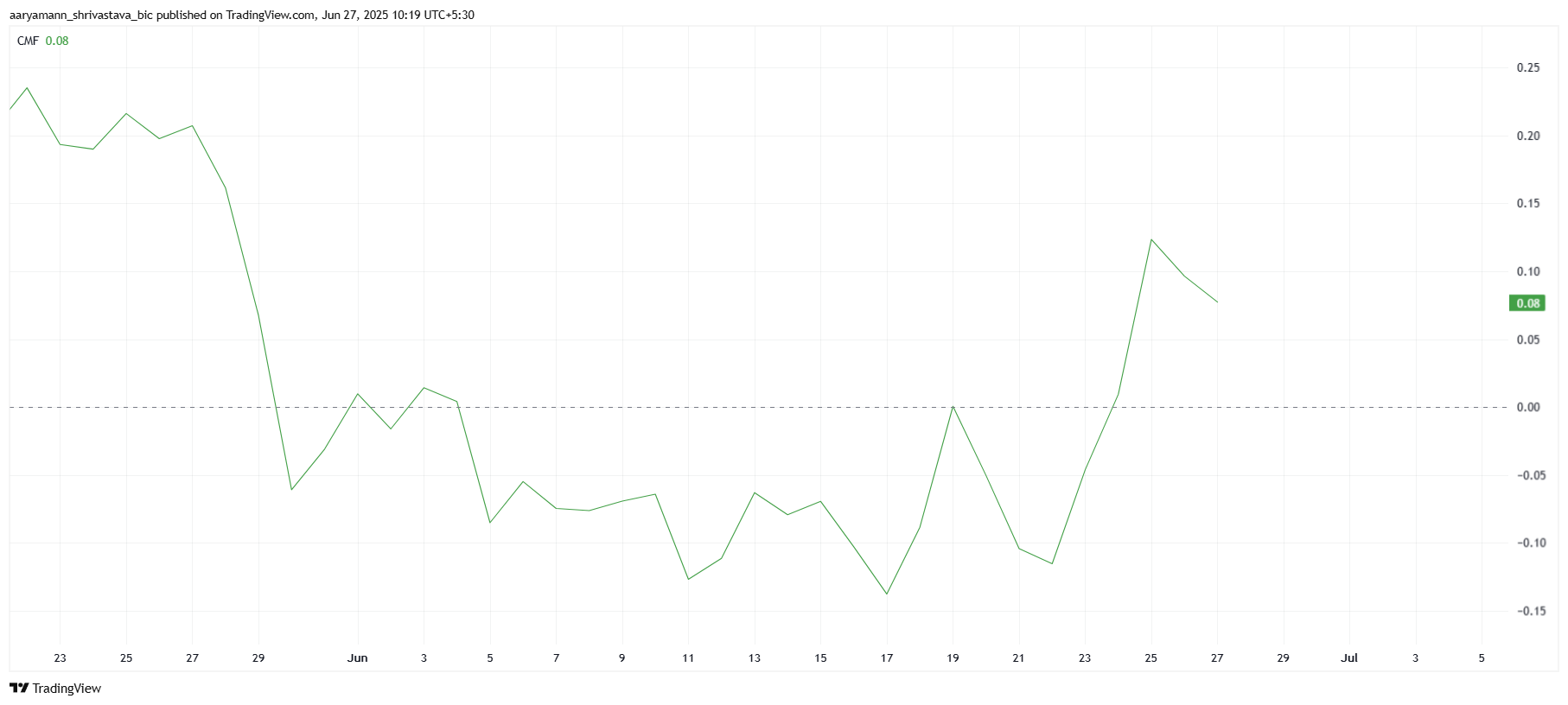 Chaikin Money Flow (CMF) indikatori hozirda keskin o’sishni ko’rsatmoqda, bu «Zilliqa»ga kirishlarning ko’payishini bildiradi. Bu o’sish, ehtimol, «Zilliqa 2.0»ning ishga tushirilishi bilan bog’liq bo’lib, investorlarni hayajonga solib, yangidan qiziqish uyg’otdi. «Zilliqa 2.0» to’liq EVM qo’llab-quvvatlovi bilan ishga tushiriladi, bu esa «Efirium»ga xos ilovalarni osongina joriy etishga imkon beradi.